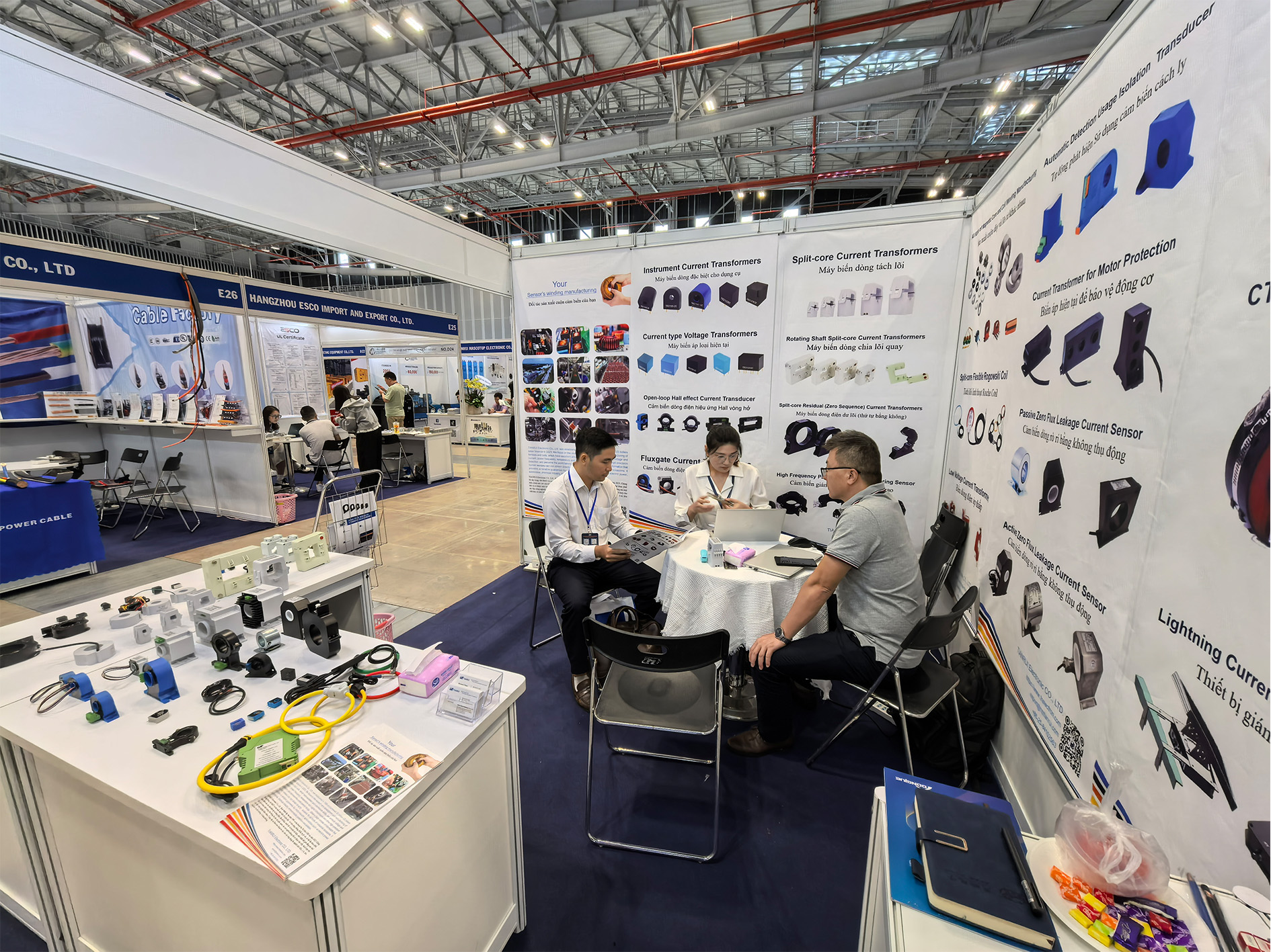 会上,天瑞电子自主研发和生产的开合式电流互感器,交直流传感器,罗氏线圈等产品吸引了不少国内外客户前来咨询洽谈,并且和越南当地客户、白俄罗斯等地客户进行了深入的交流,达成了初步的合作意向。